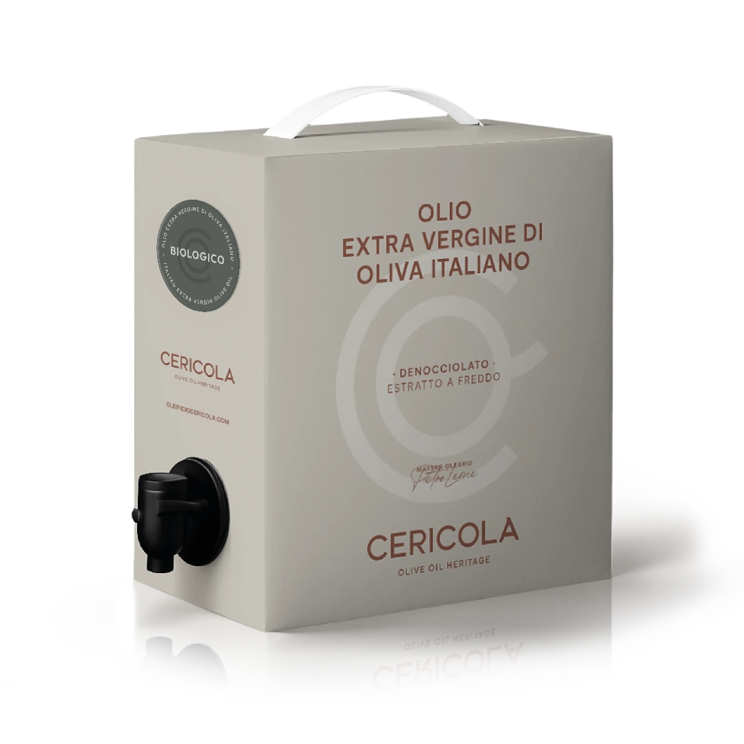 3 bag da 5 litri di extravergine denocciolato biologico, perfetta per ogni esigenza — dalla cucina quotidiana alla dispensa di famiglia.