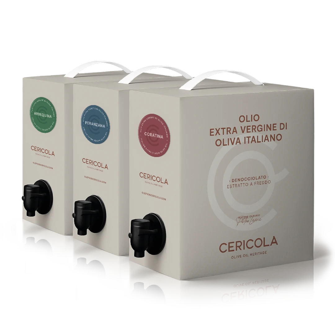 Il Bag in box è un contenitore alimentare con rubinetto, protetto da una scatola in cartone: la busta interna si restringe man mano che si utilizza l’olio, riducendo al minimo il contatto con l’ossigeno. È il formato che meglio difende l’olio da luce e aria, ideale come scorta di qualità dispensa della propria casa. Perfetto per ricaricare la bottiglia da tavola senza perdere freschezza.