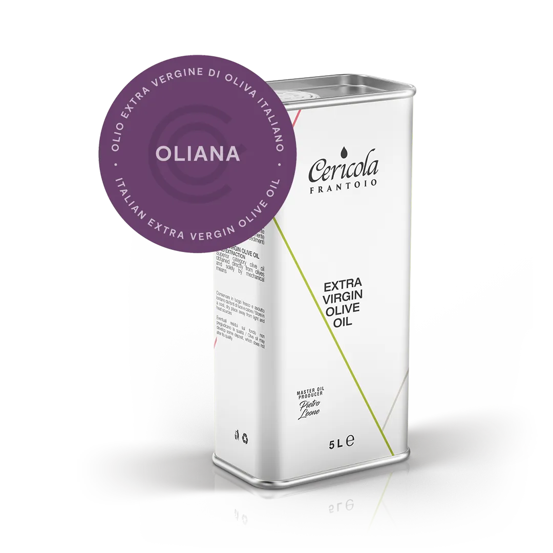 Olio extravergine 100% italiano Oliana, denocciolato e spremuto a freddo. Latta da 5L